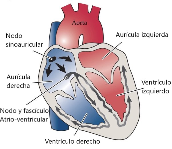 derecha, por el fascículo ventricular que pertenece al sistema de conducción del corazón. En esta parte se divide en dos ramas situadas en una y otra cara del septo interventricular.