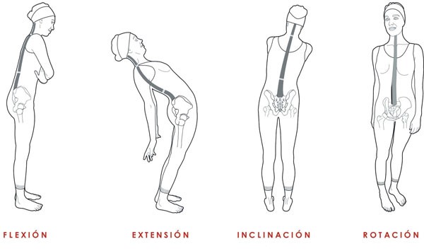 El movimiento de rotación acompaña, casi siempre, la inclinación lateral en las regiones cervical y lumbar.